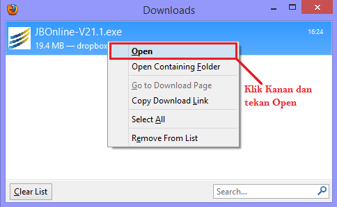Untuk menggunakan aplikasi JB Online Plus silahkan Download terlebih dahulu installer Firefox terintegrasi di sini