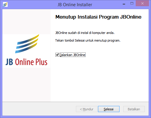 Selanjutnya tekan Selesai untuk membuka aplikasi JB Online Plus dan Anda akan diarahkan ke halaman Login Aplikasi JB Online Plus.